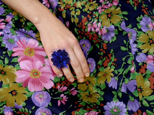 Die Blumenringe KNOSPE bestehen aus Schurwolle oder einer Polyester-Viskose-Mischung kombiniert entweder mit Mohair